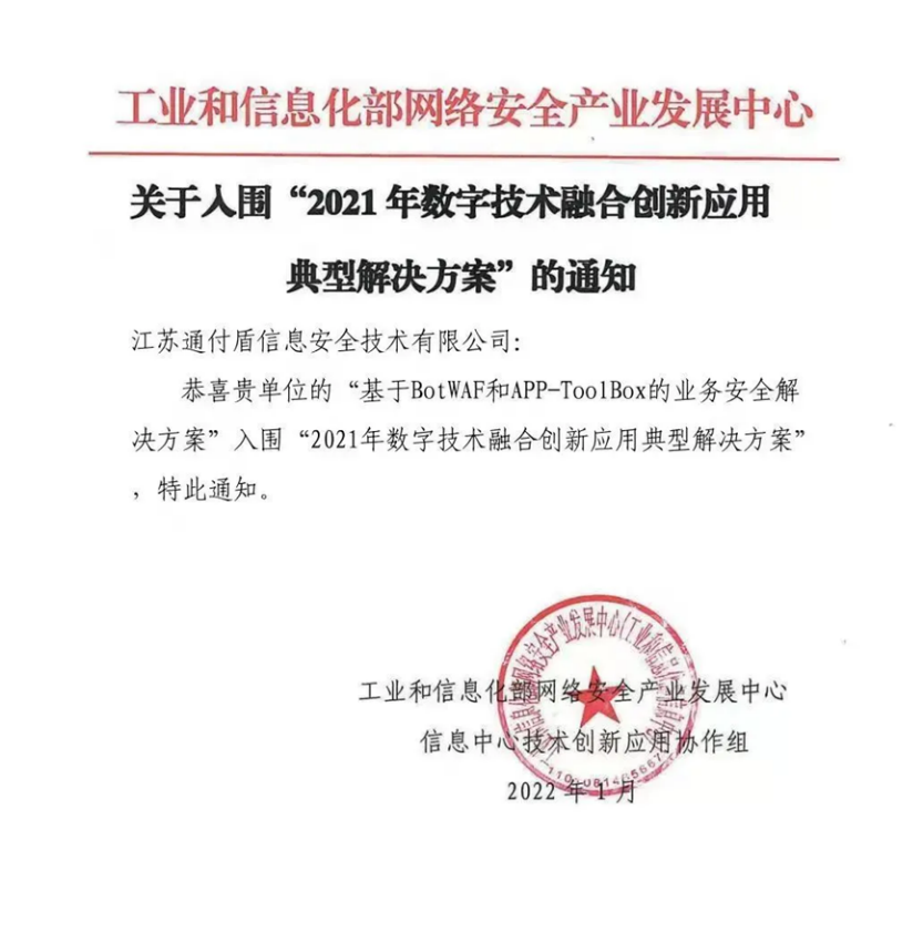在429家单位提报的663个方案中,通付盾“基于BotWAF和APP-ToolBox的业务安全解决方案”,成功突围入选“2021年数字技术融合创新应用典型解决方案”。基于BotWAF和APP-ToolBox的业务安全解决方案,搭载通付盾动态防护引擎、爬虫防护引擎和智能决策引擎,整合站点加固、动态验证、人机识别、风险过滤、自动化攻击拦截等技术对所有访问的流量进行安全检测、过滤和智能阻断,并且集成移动应用安全检查、应用安全防护为一体。
