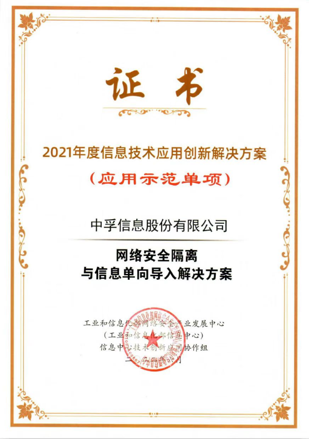 中孚信息(300659.SZ)成立于2002年,专业从事信息安全产品的研发、销售并提供整体解决方案,并于2017年5月,在深圳证券交易所创业板成功上市。在2021年信息技术应用创新解决方案征集工作中,来自中孚的“网络安全隔离与信息单向导入解决方案”和“网络安全管理与运行监管平台”均获得了2021年信息技术应用创新解决方案应用示范单项奖。