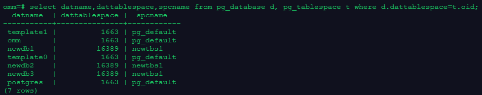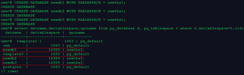 2.创建3个数据库newdb1、newdb2、newdb3,默认表空间为newtbs1;