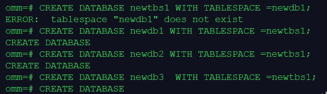 2.创建3个数据库newdb1、newdb2、newdb3,默认表空间为newtbs1