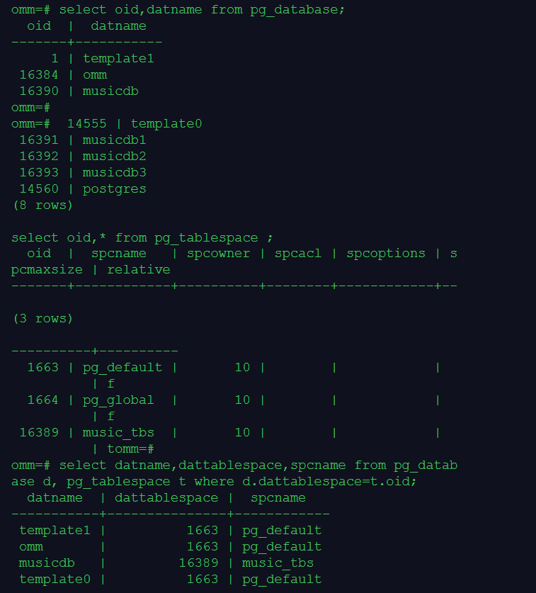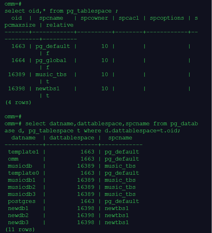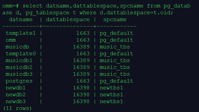 --从文件系统,查看music_tbs表空间oid,可以看到一个表空间可以有多个数据库