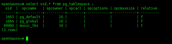 create tablespace music_tbs relative location 'tablespace/test_ts1';