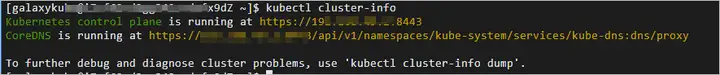 minikube kubectl -- cluster-info返回如下结果,您可以查看到集群相关信息.
