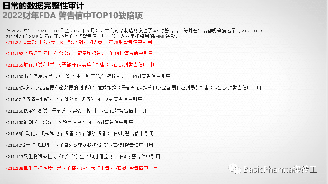 完整的数据和原始数据本质上是相同的术语,对于计算机化系统,包括审计追踪条目的复核,无论该系统是用作混合应用程序还是电子应用程序。如果应用程序支持这种方法,第二人复核的审计追踪的重点应该是例外审核。例外审核是一种基于风险的数据完整性方法,它只审查系统通知审查员的与gmp相关的修改或删除的适用审计追踪条目。这种工作方式可以是用颜色编码数据、复选框或注释等。