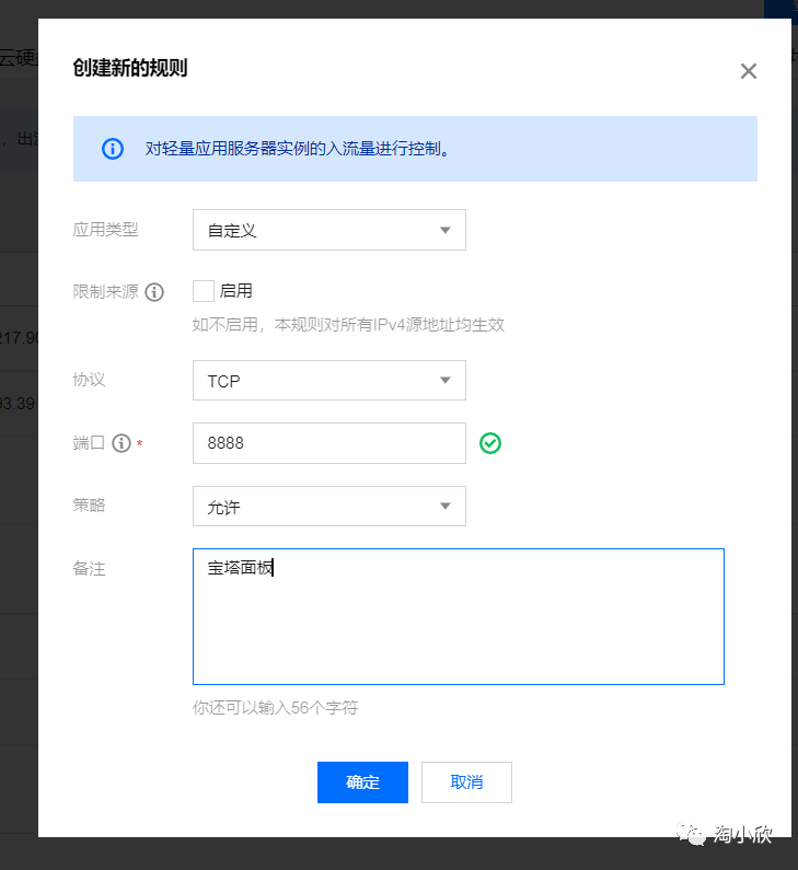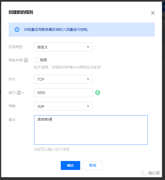 设置规则自定义,输入端口号为5000,备注写凌波微步.