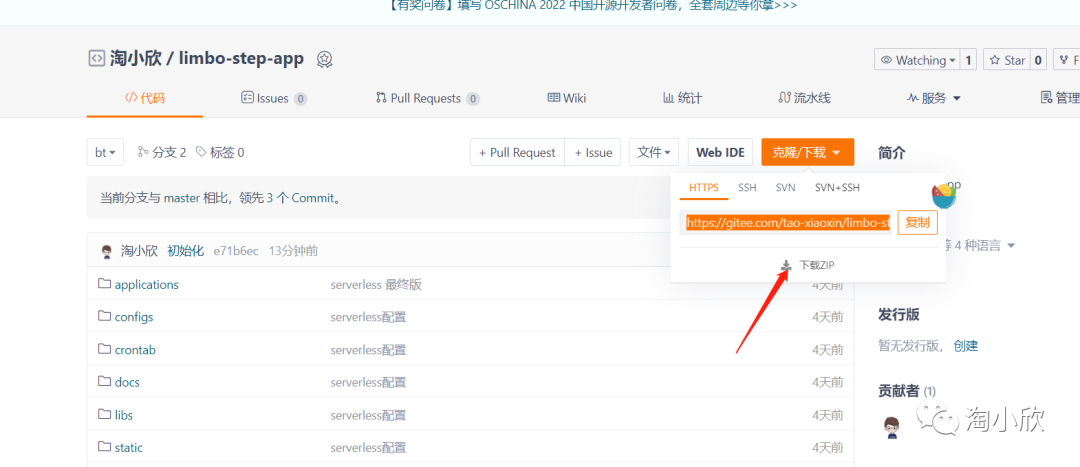 https://gitee.com/tao-xiaoxin/limbo-step-app/tree/bt/打开地址后,点击下载zip