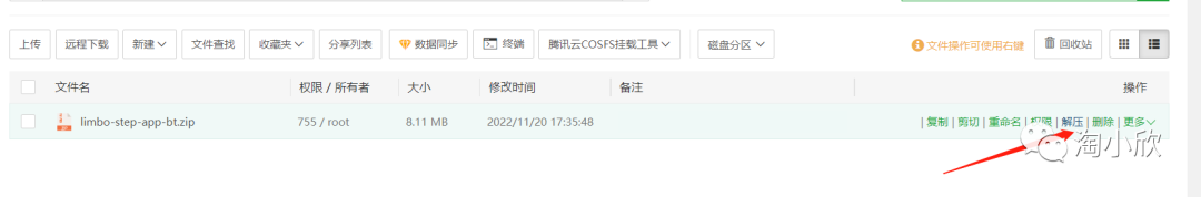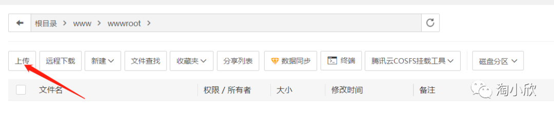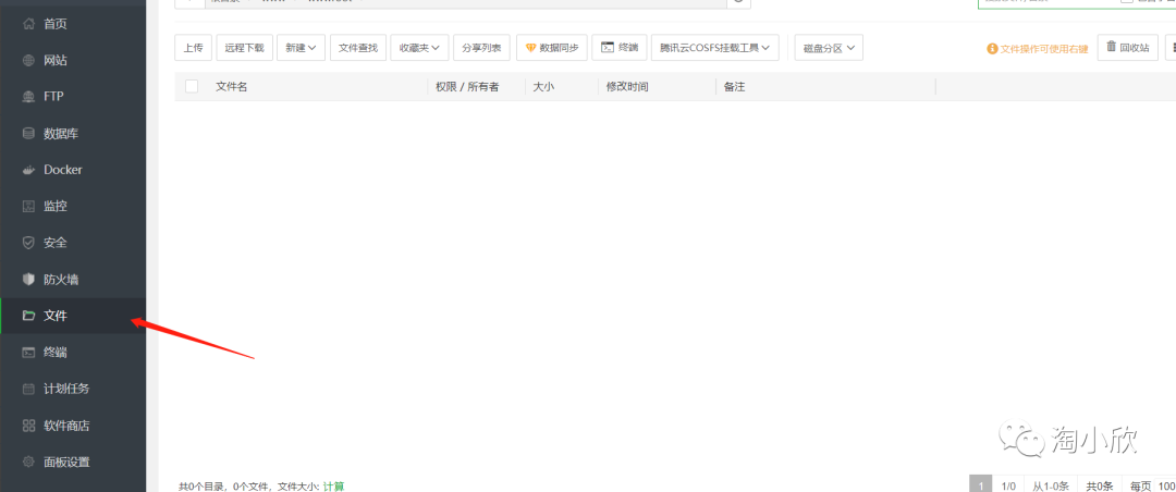 再次打开宝塔面板,点击文件,上传刚刚下载的压缩包