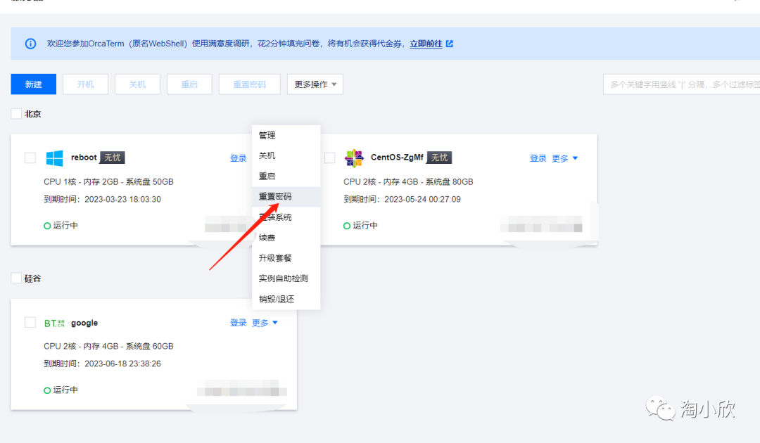 忘记了服务器root密码的可以腾云服务器控制台.点击重置密码.