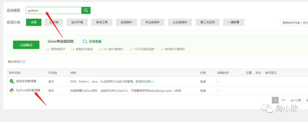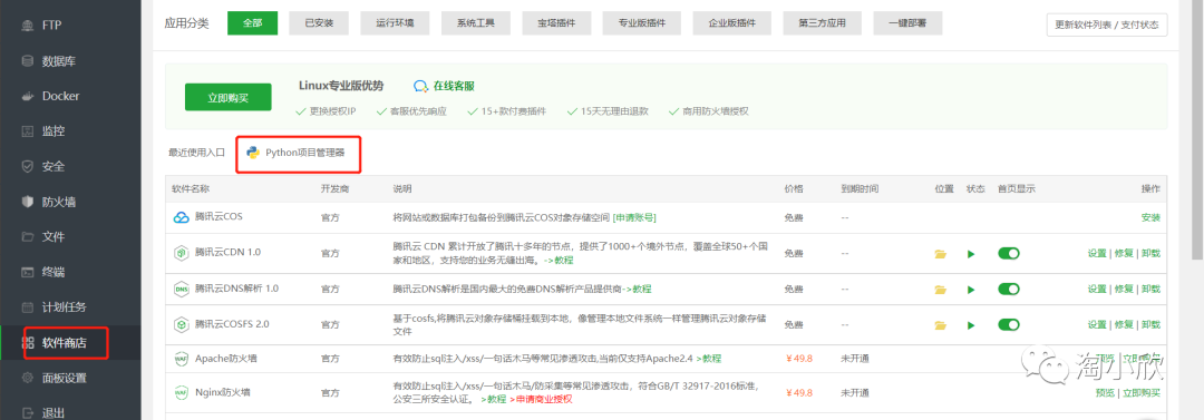 再回到宝塔面板,点击软件商店--->python项目管理器