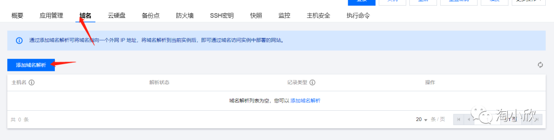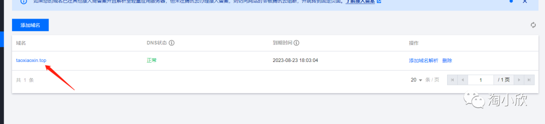 先回到腾讯云服务器控制台,点击域名,添加解析