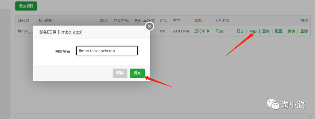 点击映射,然后输入你刚刚解析的域名,点击确定