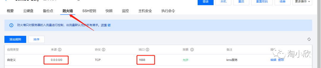 systemctl restart firewalld在服务器控制台中打开安全组,然在将端口加入到安全组规则中: