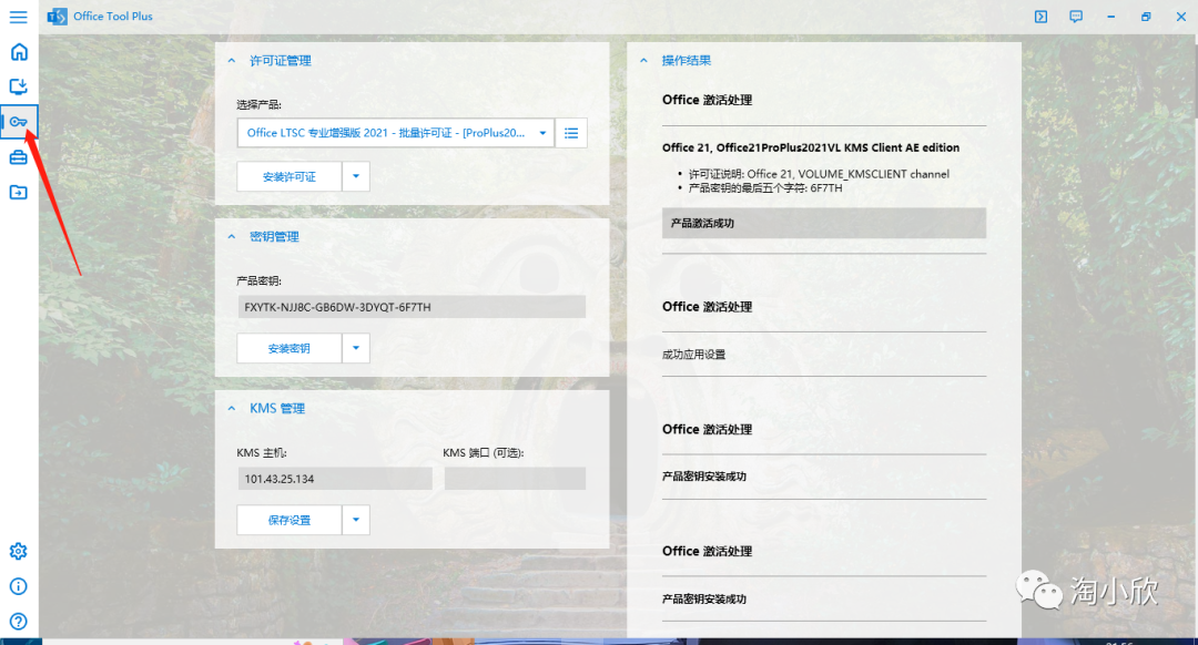 安装许可证:选择你刚刚安装office对应版本的许可证,点击安装许可证。