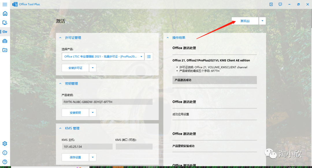 设置kms:输入你搭建的kms主机ip,端口可以不输,默认就是1688,点击保存设置
