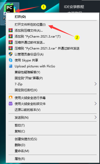 如果你忘记了你的pycharm安装路径在哪里,可以点击pycharm快捷方式--->右键---->点击打开文件所在位置.