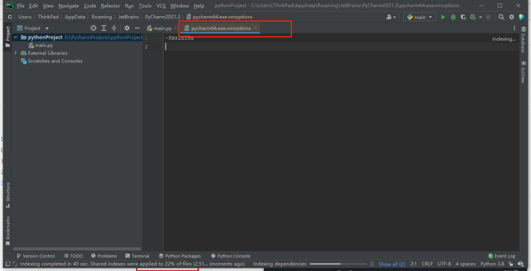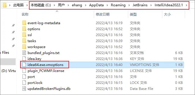 /Users/用户名/Library/Application Support/JetBrains/IntelliJIdea2021.3/idea64.vmoptions以下是Windows的示例: