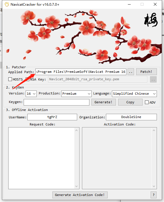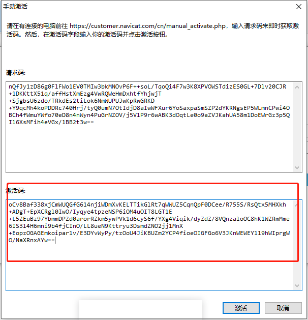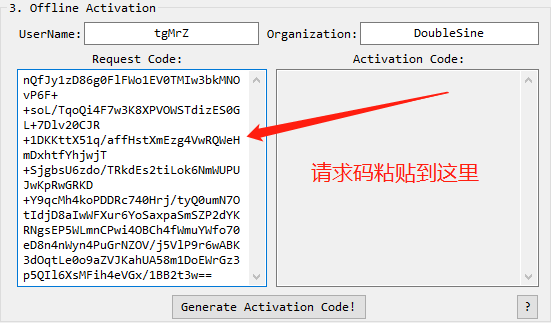 将 Navicat 给的请求码复制到注册机 Request Code 中