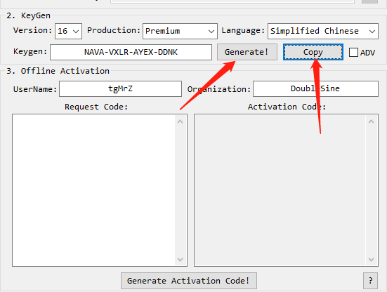 打开注册软件.点击 Generate生成注册码.再点击copy.