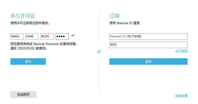 这里的激活方式又两种,一种是无限试用版,一种就是永久激活.