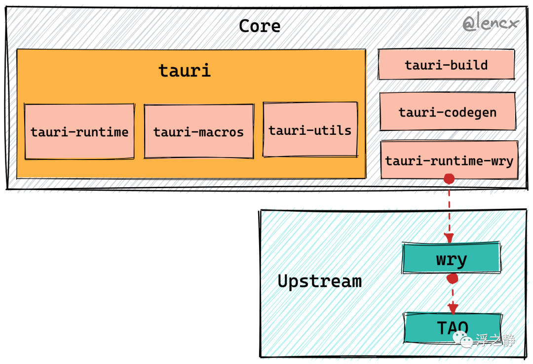 上游条板箱(Upstream Crates) - Tauri-Apps 组织维护 Tauri 的两个“上游”板条箱,即用于创建和管理应用程序窗口的 TAO,以及用于与窗口内的 Webview 交互的 WRY。