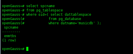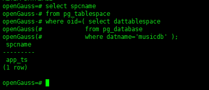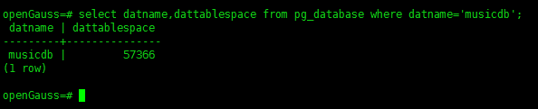 1)首先执行下面的语句,查看musicdb数据库默认表空间的对象oid