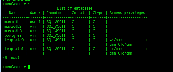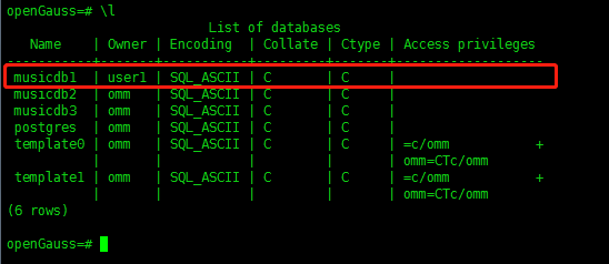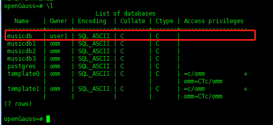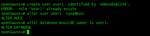 alter database musicdb owner to user1; ##修改数据库musicdb的拥有为user1