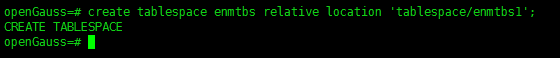 create tablespace enmtbs relative location 'tablespace/enmtbs1';