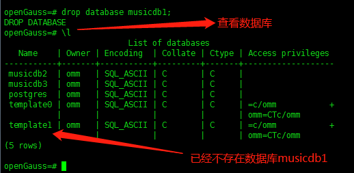 从下面的截图可以看出,数据库musicdb1已经被删除;