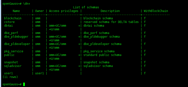 alter user user1 sysadmin; ##授权user1的权限是系统权限