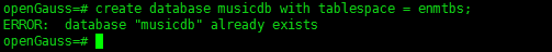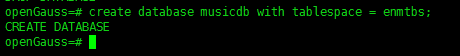 create database musicdb with tablespace = enmtbs;