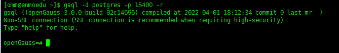 gsql -d postgres -p 15400 -r
