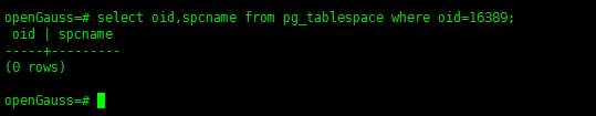 select oid,spcname from pg_tablespace where oid=16389;
