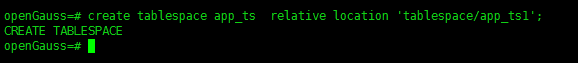 create tablespace app_ts relative location 'tablespace/app_ts1';