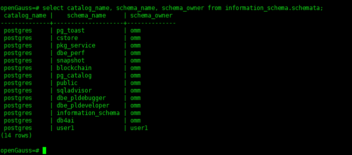 - 查看数据库下有哪些模式