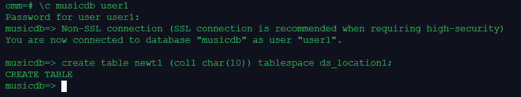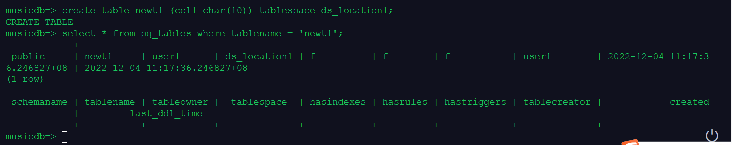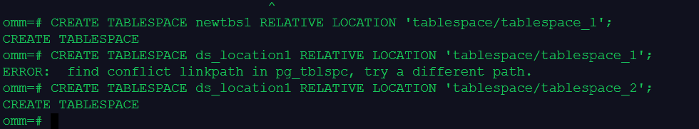 1.创建表空间newtbs1、 ds_location1,查看表空间: