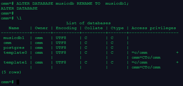 ALTER DATABASE musicdb RENAME TO musicdb1;