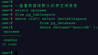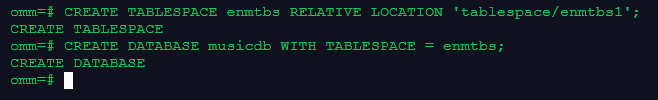 CREATE DATABASE musicdb WITH TABLESPACE = enmtbs;