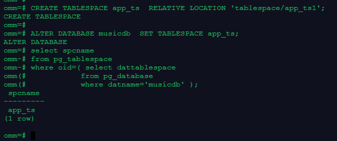 CREATE TABLESPACE app_ts RELATIVE LOCATION 'tablespace/app_ts1';