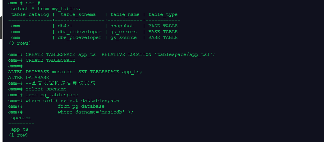 CREATE TABLESPACE app_ts RELATIVE LOCATION 'tablespace/app_ts1';