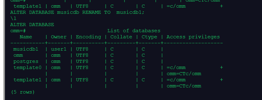 ALTER DATABASE musicdb RENAME TO musicdb1;
