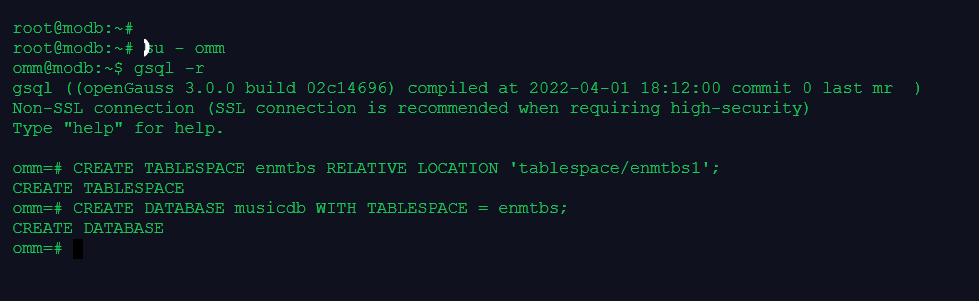 CREATE DATABASE musicdb WITH TABLESPACE = enmtbs;