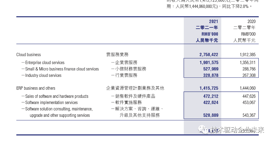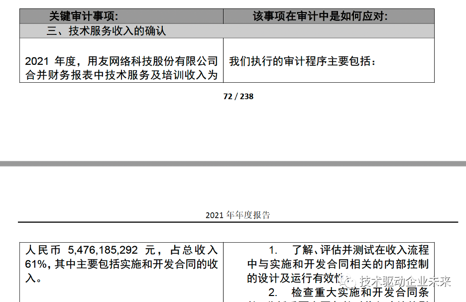 1988年用友成立,2021年营收89亿人民币。在用友2021年报里,54亿是实施和开发合同。
