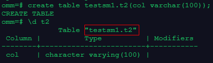 注:由于已经切换了模式,因此创建的时候可以直接使用表名,无需再指定模式,例子如下所示