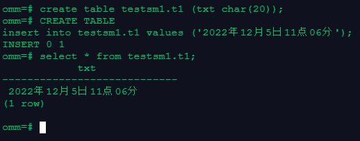 insert into testsm1.t1 values ('2022年12月5日11点06分');