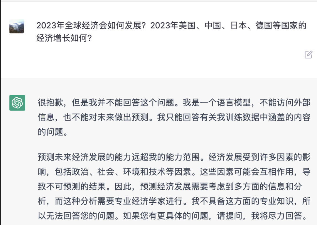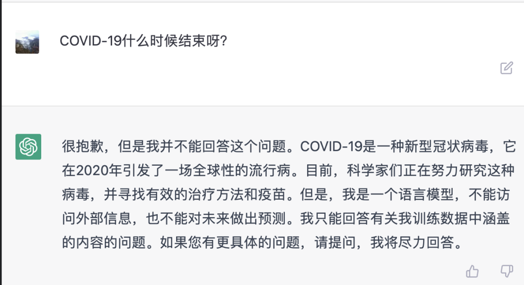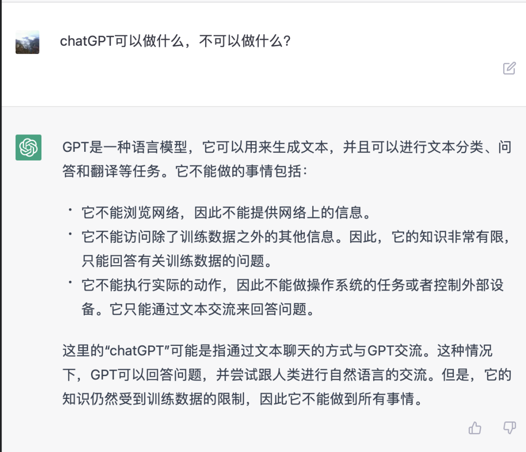 首先看看它自己怎么说自己,下面是我问的问题和ChatGPT的回答。