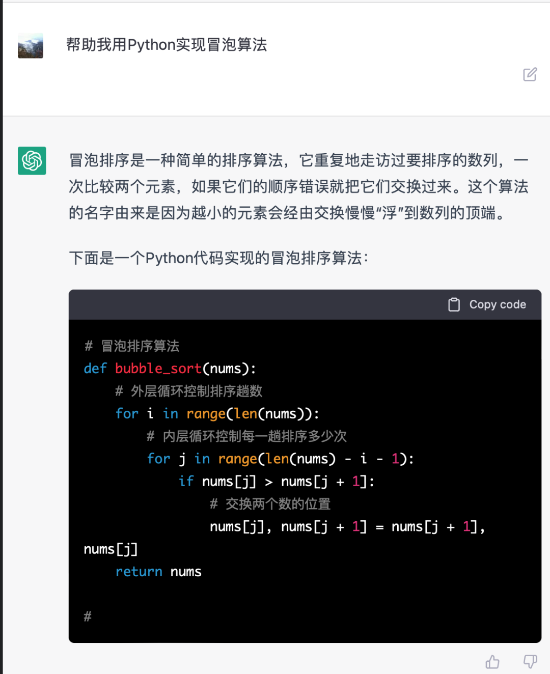 关于预测的问题,ChatGPT很谦虚,有点“知之为知之,不知为不知,是知也”的味道,好吧。让我们再看看它的编程能力吧。