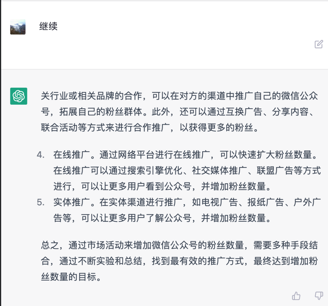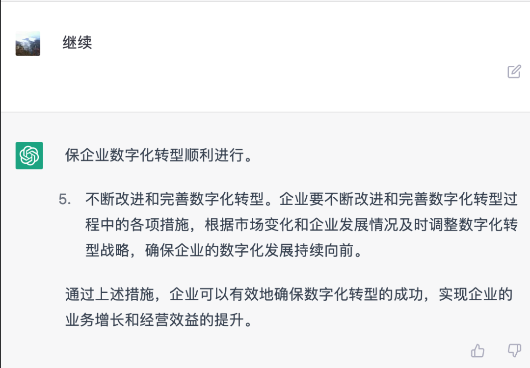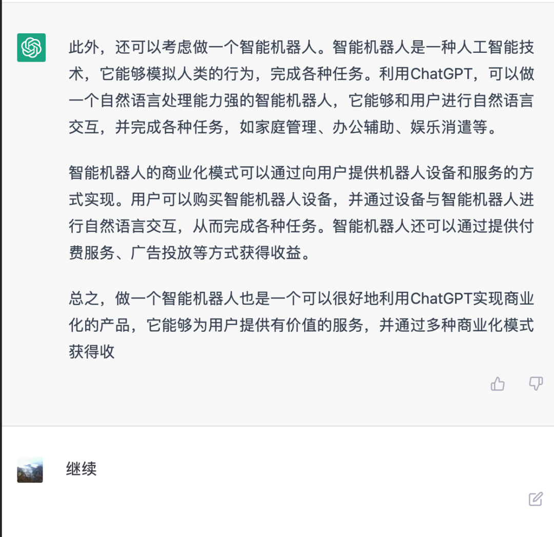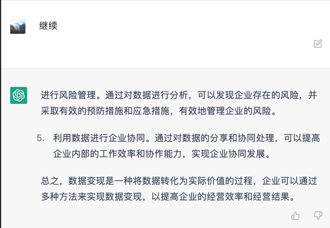 如果内容比较多,还可以让他“继续”。如果你不满意,还可以让他重新回答,每次回答可能都有差异。