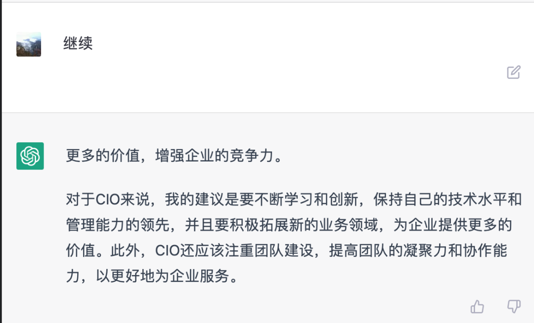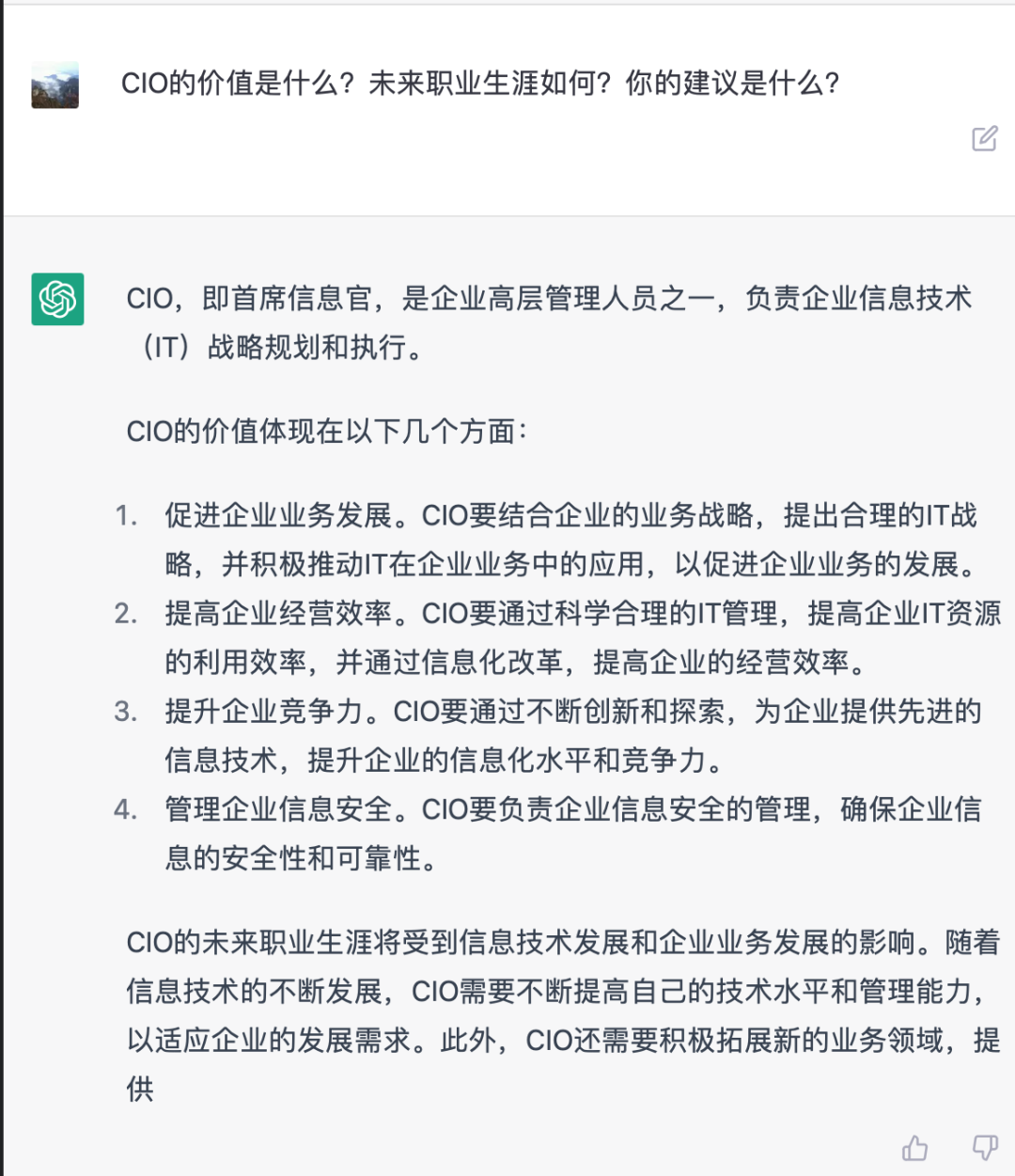 我们公众号的很多读者是CIO,我们看看ChatGPT对CIO有什么建议。