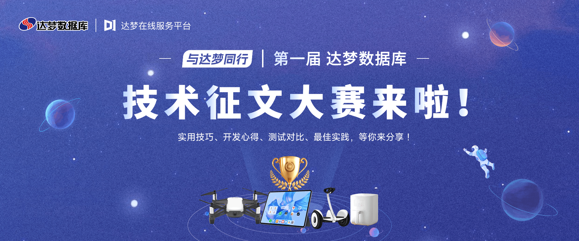 入围文章视为同意授权达梦数据官方对文章内容进行转载,本活动最终解释权归武汉达梦数据库股份有限公司所有,欢迎大家积极参加、分享经验、为国产数据库发展贡献力量!