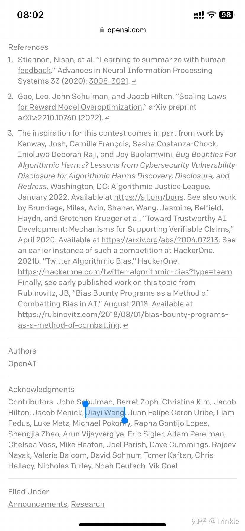 RLHF会改变现在的research现状,个人认为一些很promising的方向:在LM上重新走一遍RL的路;如何更高效去训练RM和RL policy;写一个highly optimized RLHF library来取代我的tianshou(x dataset的质量、多样性和pretrain在RLHF的比重很重要 dialog是一个完备的载体,能够包含任何东西 有人专门跟我说openai是下一个google 可以开始想象AGI之后的世界了,我已经想了几个月了。比如最简单的想法是,这些model能够提供廉价的代码生产力,虽然不是100% perfect,但是可以极大地促进单个程序员的生产效率,因此科技公司的scope可以成倍的变大,比如之前需要一个team现在可能只需要一个人+一个model,那么相同数量的员工的话生产力会是之前的数倍 我们没有借鉴之前搞dialog agent的工作思路(其实是没了解…),如果有好的idea的话欢迎评论区留言 机器之心推送评论区第一位说内测了好几个月的人是我女票(狗头)